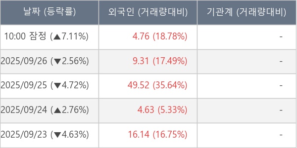 [표] 외국인ㆍ기관 순매매량 (단위 만주)