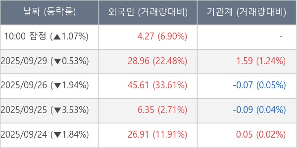 [표] 외국인ㆍ기관 순매매량 (단위 만주)