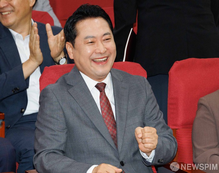 [서울=뉴스핌] 윤창빈 기자 = 장동혁 국민의힘 대표가 30일 오전 서울 여의도 국회 의원회관에서 권영세 국민의힘 의원 주최로 열린 디지털 금융 혁신의 도전 : 원화 스테이블코인 도입 쟁점과 바람직한 제도적 체계 토론회에서 미소를 짓고 있다. 2025.09.30 pangbin@newspim.com