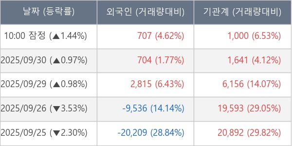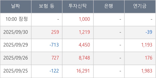 [표] 주요 기관별 순매매량 (단위 주)
