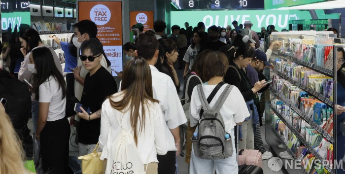 [서울=뉴스핌] 양윤모 기자 = 중국 단체관광객의 무비자 입국 첫날인 29일 서울 중구 명동의 올리브영을 방문한 중국관광객들이 쇼핑을 하고 있다. 3명 이상 중국인 단체관광객은 29일부터 무비자로 최대 15일 동안 대한민국 전역을 여행할 수 있다. 2025.09.29 yym58@newspim.com |