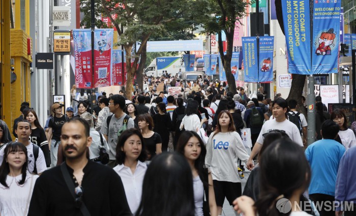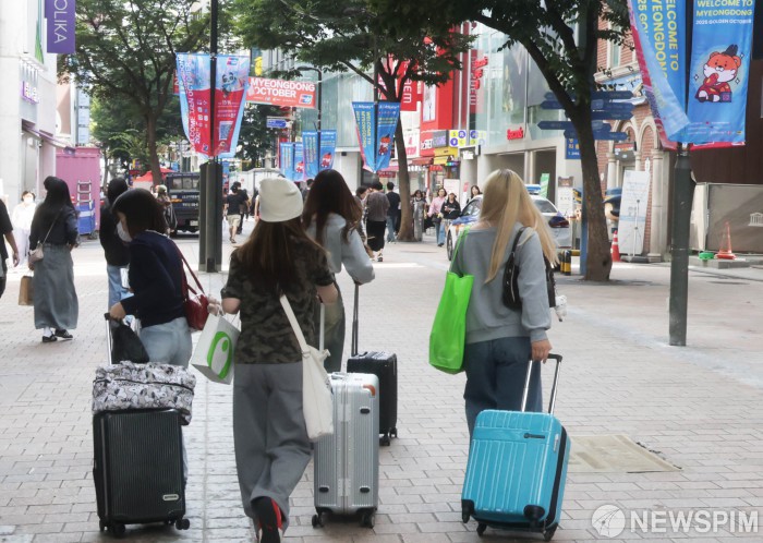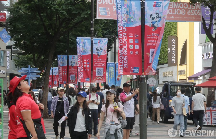 [서울=뉴스핌] 양윤모 기자 = 중국 단체관광객의 무비자 입국 첫날인 29일 명동을 찾은 관광객들이 쇼핑을 위해 이동하고 있다. 3명 이상 중국인 단체관광객은 29일부터 무비자로 최대 15일 동안 대한민국 전역을 여행할 수 있다. 2025.09.29 yym58@newspim.com |