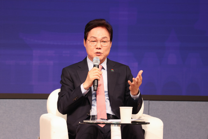 박완수 경남지사가 1일 창원컨벤션센터에서 열린 '영남권 정책토론회' 시도지사 특별대담에서 지방자치 30주년을 맞아 실질적인 재정권 확보의 필요성을 강조하고 있다. [사진=경남도] 2025.10.01 |