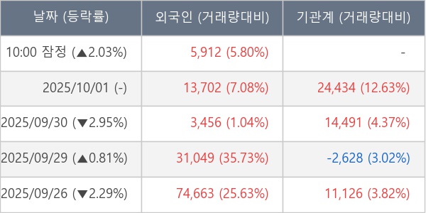 [표] 외국인ㆍ기관 순매매량 (단위 주)