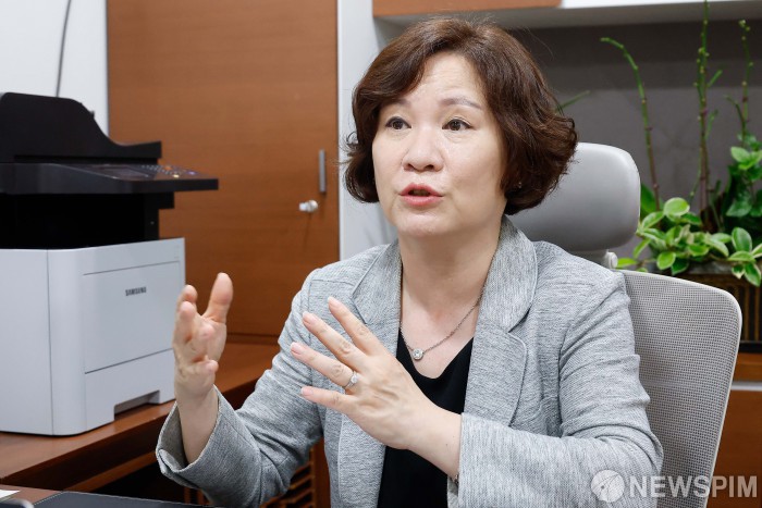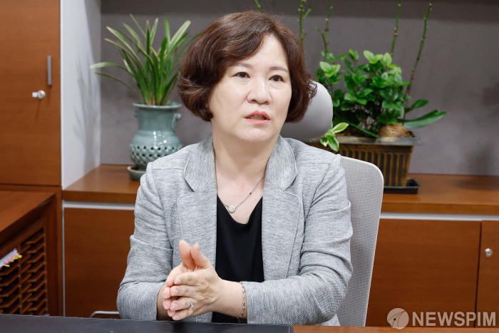[성남=뉴스핌] 류기찬 기자 = 조혜진 KB골든라이프 분당지점 센터장이 3일 오후 경기 성남시 분당구 KB골든라이프센터 분당지점에서 뉴스핌과 인터뷰를 하고 있다. 2025.09.03 ryuchan0925@newspim.com