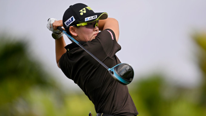 [서울=뉴스핌] 장환수 스포츠전문기자= 2일 2025 롯데 챔피언십 1라운드에서 8언더파 64타로 단독 선두에 오른 이와이 아키에. [사진=LPGA] 2025.10.02 zangpabo@newspim.com |