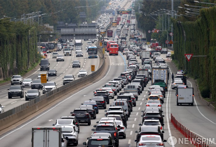 [서울=뉴스핌] 정일구 기자 = 추석 연휴를 하루 앞둔 2일 오후 서울 서초구 잠원IC 인근 경부고속도로 하행선이 귀성 차량들로 정체를 빚고 있다. 2025.10.02 mironj19@newspim.com