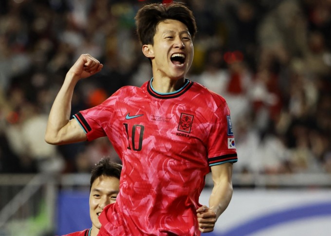 [수원 로이터 =뉴스핌] 박상욱 기자 = 이재성이 25일 북중미 월드컵 아시아 3차 예선 요르단과의 경기에서 선제골을 넣고 환호하고 있다. 2025.3.25 psoq1337@newspim.com
