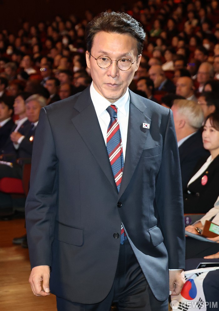 [서울=뉴스핌] 정일구 기자 = 김민석 국무총리가 3일 오전 서울 종로구 세종문화회관에서 열린 제4357주년 개천절 경축식에서 경축사를 위해 이동하고 있다. 2025.10.03 mironj19@newspim.com