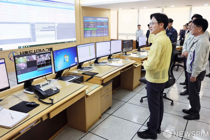 [서울=뉴스핌] 김정관 산업통상부 장관이 3일 오후 서울 강서구 서울도시가스 상황실을 방문해 도시가스 안전관리 현장을 점검하고 있다. [사진=산업통상자원부] 2025.10.03 photo@newspim.com