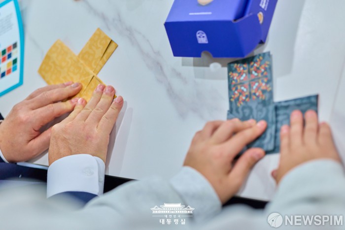 [서울=뉴스핌] 이재명 대통령이 3일 인천 강화군에 위치한 아동양육시설을 찾아 어린이들과 딱지를 만들고 있다. [사진=대통령실] 2025.10.03 photo@newspim.com