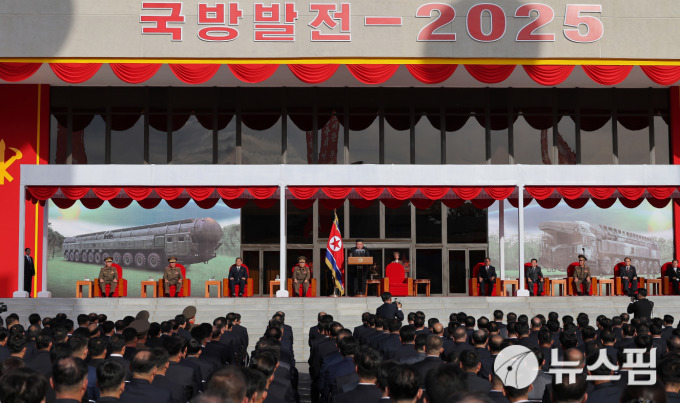 [서울=뉴스핌] 이영종 통일전문기자 = 4일 평양에서 열린 무기전시회 '국방발전-2025'에 참석한 김정은 국무위원장이 연설을 하고 있다. [사진=조선중앙통신] 2025.10.05 yjlee@newspim.com |