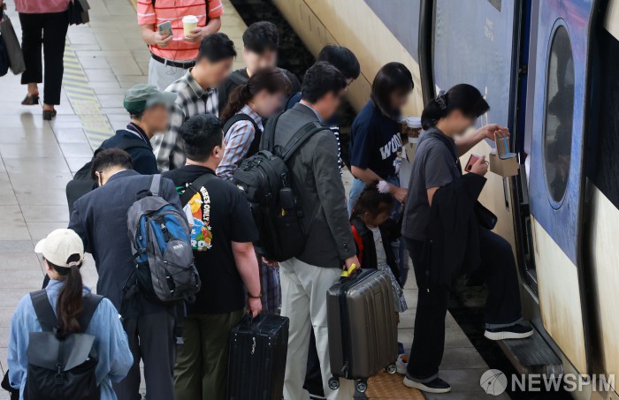 [서울=뉴스핌] 김학선 기자 = 추석 전날인 5일 서울역에서 시민들이 막바지 귀성길에 오르고 있다. 2025.10.05 yooksa@newspim.com