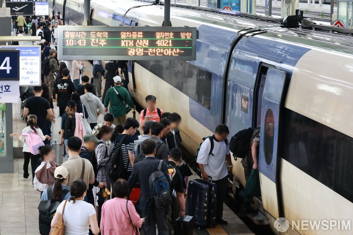 [서울=뉴스핌] 김학선 기자 = 추석 전날인 5일 서울역에서 시민들이 막바지 귀성길에 오르고 있다. 2025.10.05 yooksa@newspim.com