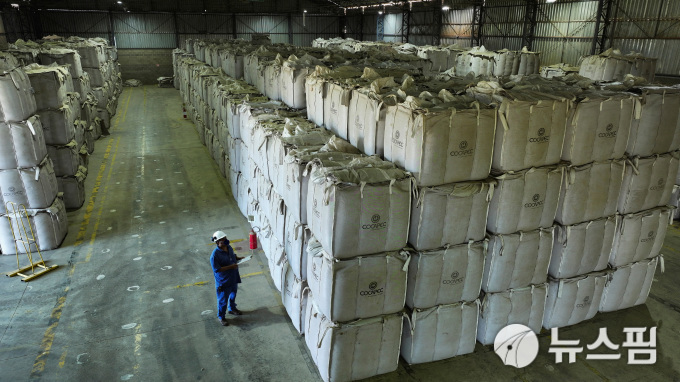 2025년 8월 1일 브라질 프란카에 있는 농부 협동조합 창고에서 한 작업자가 커피 원두가 담긴 대형 포대를 점검하는 모습이 보인다. 트럼프 대통령의 50% 관세로 인해 브라질산 커피의 중국 수출 증가와 간접 거래 확대가 예상된다.[사진=로이터 뉴스핌] |