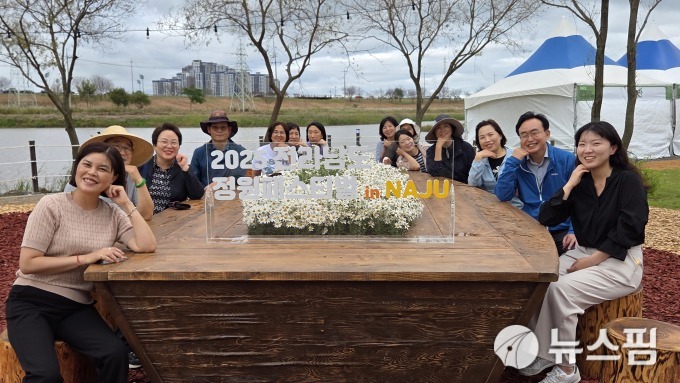 [나주=뉴스핌] 조은정 기자 = 윤병태 전남 나주시장(오른쪽 두 번째)이 8일 영산강정원 일원에서 열린 '2025 전라남도 정원 페스티벌'에 참가해 시민들과 함께 기념사진을 찍고 있다. 2025.10.08 ej7648@newspim.com