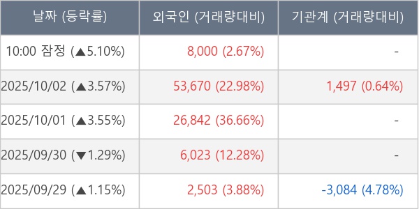 [표] 외국인ㆍ기관 순매매량 (단위 주)