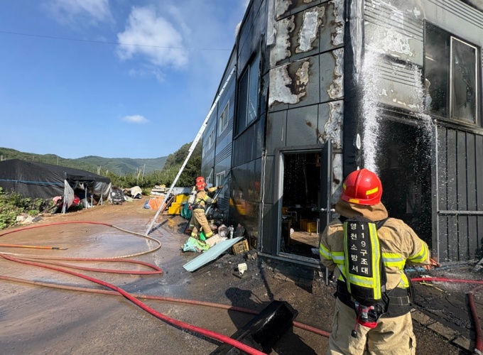 [영천=뉴스핌] 남효선 기자 = 경북 영천의 한 농사용 창고에서 화재가 발생해 발화 1시간 50여 분 만에 진화했다. 다행히 인명 피해는 없었다.