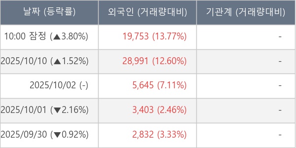 [표] 외국인ㆍ기관 순매매량 (단위 주)