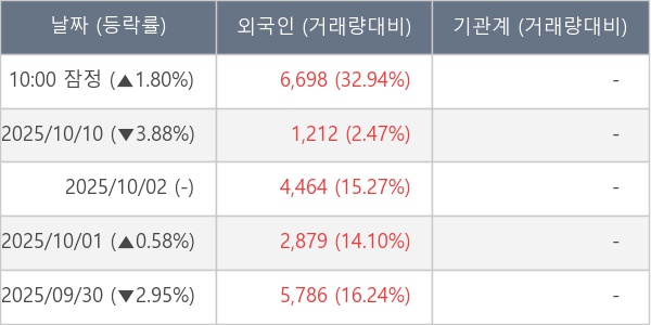 [표] 외국인ㆍ기관 순매매량 (단위 주)
