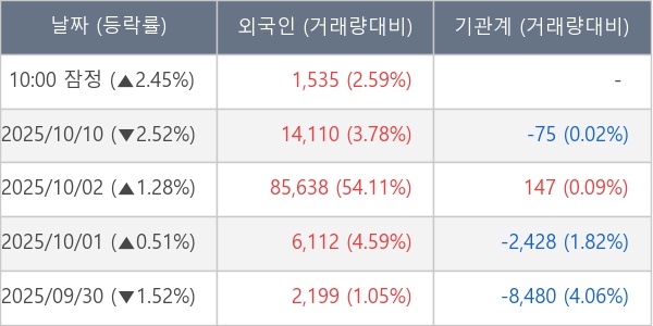 [표] 외국인ㆍ기관 순매매량 (단위 주)