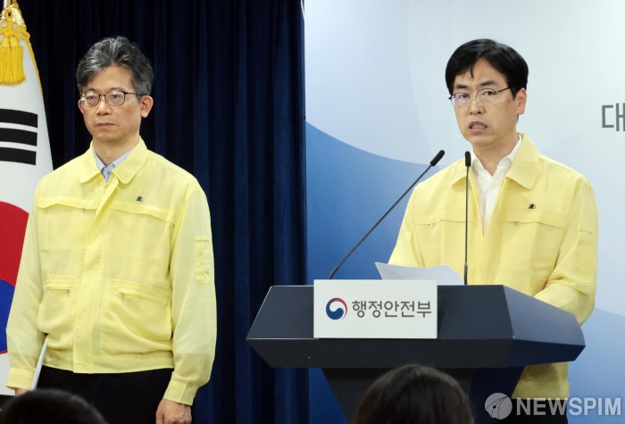 [서울=뉴스핌] 이길동기자=김민재 행정안전부 차관이 13일 서울 종로구 정부서울청사에서 국가정보자원관리원 행정정보시스템 화재 관련 중앙재난안전대책본부 브리핑을 하고 있다. 2025.10.13gdlee@newspim.com