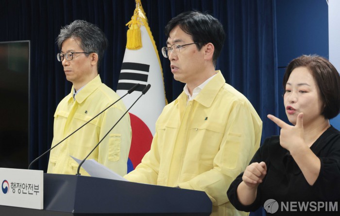 [서울=뉴스핌] 이길동기자=김민재 행정안전부 차관이 13일 서울 종로구 정부서울청사에서 국가정보자원관리원 행정정보시스템 화재 관련 중앙재난안전대책본부 브리핑을 하고 있다. 2025.10.13gdlee@newspim.com