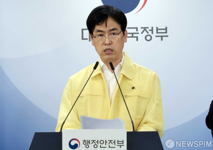 [서울=뉴스핌] 이길동기자=김민재 행정안전부 차관이 13일 서울 종로구 정부서울청사에서 국가정보자원관리원 행정정보시스템 화재 관련 중앙재난안전대책본부 브리핑을 하고 있다. 2025.10.13gdlee@newspim.com