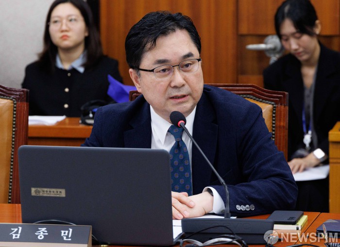 [서울=뉴스핌] 윤창빈 기자 = 김종민 무소속 의원이 13일 오후 서울 여의도 국회에서 열린 산업통상자원중소벤처기업위원회의 산업통상자원부 등에 대한 국정감사에서 질문을 하고 있다. 2025.10.13 pangbin@newspim.com