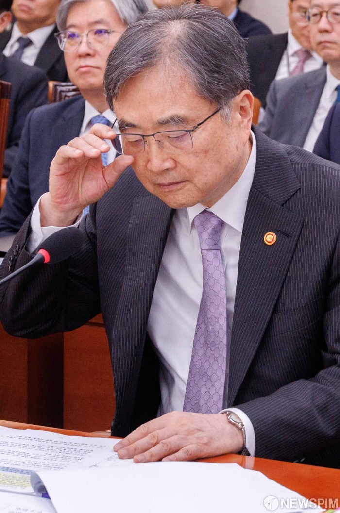 [서울=뉴스핌] 윤창빈 기자 = 조현 외교부 장관이 13일 오후 서울 여의도 국회에서 열린 외교통일위원회의 외교부 등에 대한 국정감사에서 자료를 확인하고 있다. 2025.10.13 pangbin@newspim.com |