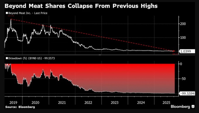 비욘드 미트는 최대 시장인 미국에서 육류 대체품에 대한 소비자 수요 약화에 직면해 있다. 지난 분기 매출은 약 20% 감소한 7500만 달러를 기록했다. 주가는 올해 들어 70% 이상 하락했고, 2021년 초 기록한 최고치 대비 99% 이상 폭락했다.