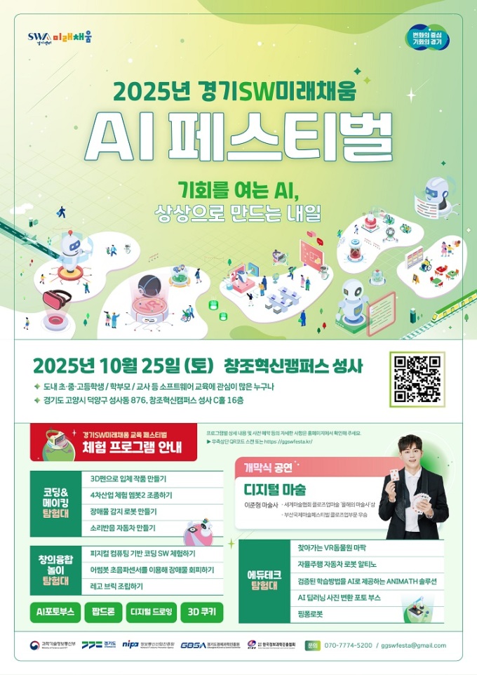 경기도는 과학기술정보통신부, 정보통신산업진흥원과 협력해 오는 25일 '기회를 여는 AI, 상상으로 만드는 내일' 주제로 '2025 경기SW미래채움 AI 페스티벌'을 개최한다. [사진=경기도] |