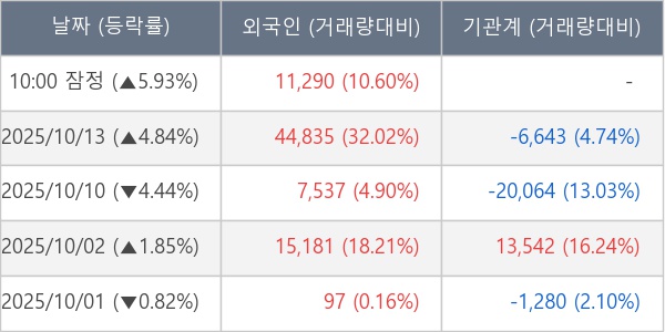 [표] 외국인ㆍ기관 순매매량 (단위 주)