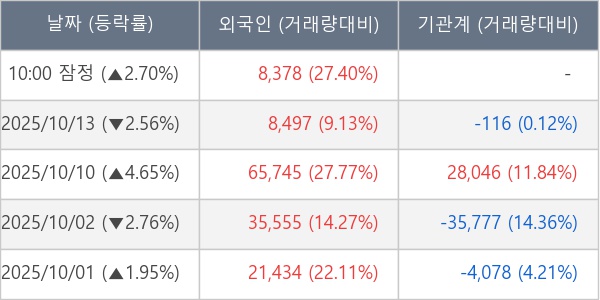[표] 외국인ㆍ기관 순매매량 (단위 주)