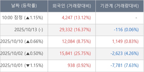 [표] 외국인ㆍ기관 순매매량 (단위 주)