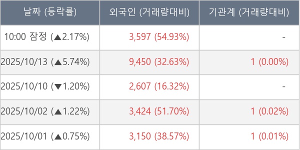 [표] 외국인ㆍ기관 순매매량 (단위 주)