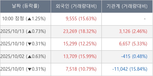 [표] 외국인ㆍ기관 순매매량 (단위 주)
