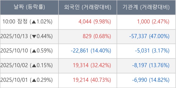 ※ 사모펀드 등 일부 기관의 순매매량은 표시되지 않음