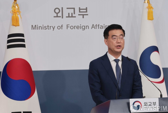 [서울=뉴스핌] 이길동 기자 = 이재웅 외교부 대변인이 14일 서울 종로구 외교부에서 열린 정례브리핑에서 ‘캄보디아 납치·감금 사태’와 관련해 취재진의 질문에 답하고 있다 2025.10.14 gdlee@newspim.com
