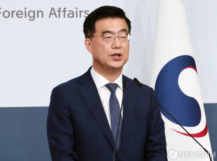 [서울=뉴스핌] 이길동 기자 = 이재웅 외교부 대변인이 14일 서울 종로구 외교부에서 열린 정례브리핑에서 ‘캄보디아 납치·감금 사태’와 관련해 취재진의 질문에 답하고 있다 2025.10.14 gdlee@newspim.com