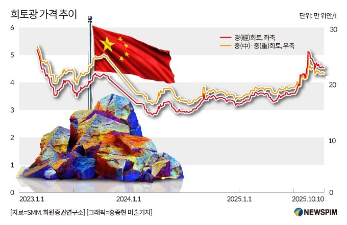 양사는 올해 4분기부터 희토류 정광 거래가격을 톤(t)당 2만6205위안(건조 기준, REO=50%, 세금 미포함)으로 조정할 계획이다. 이는 3분기 대비 37% 상승한 수준이다. REO(희토류 산화물) 비율이 1% 변동할 때마다 세전 가격은 t당 524.1위안 변동된다.