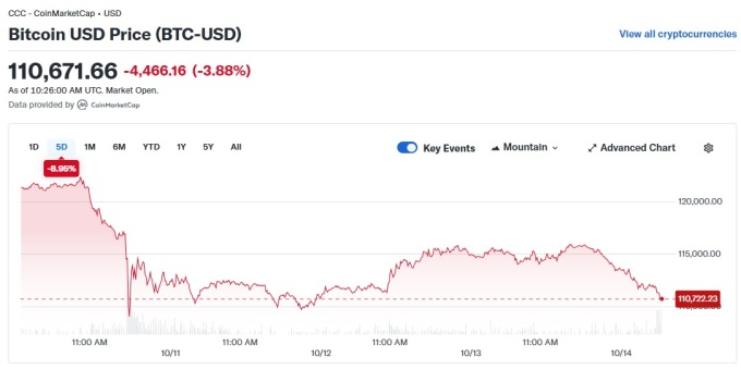 이번 하락은 도널드 트럼프 미국 대통령이 지난주 중국산 수입품에 100% 관세 부과를 경고한 이후 이어진 변동성의 연장선에 있다. 당시 하루 만에 200억달러 규모의 포지션이 청산되며 사상 최대 규모의 '강제 청산 사태'가 발생했다. 주말 사이 잠시 반등했지만 주 초반 다시 낙폭을 키우며 일요일 저점 대비 약 4% 상승에 그쳤다.
