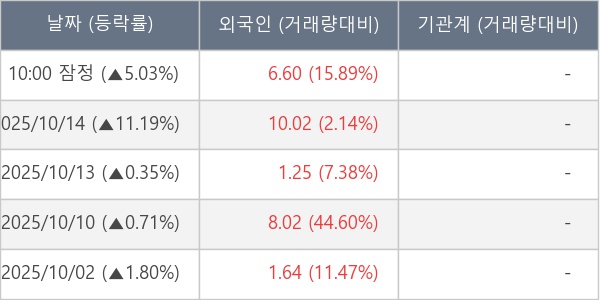 [표] 외국인ㆍ기관 순매매량 (단위 만주)