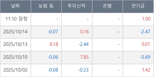 [표] 주요 기관별 순매매량 (단위 만주)