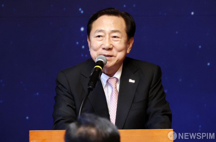 [서울=뉴스핌] 정일구 기자 = 김기문 중소기업중앙회장이 15일 오전 서울 여의도 국회 사랑재에서 열린 국회 사회적 대화 공동 선언식에서 인사말을 하고 있다. 2025.10.15 mironj19@newspim.com