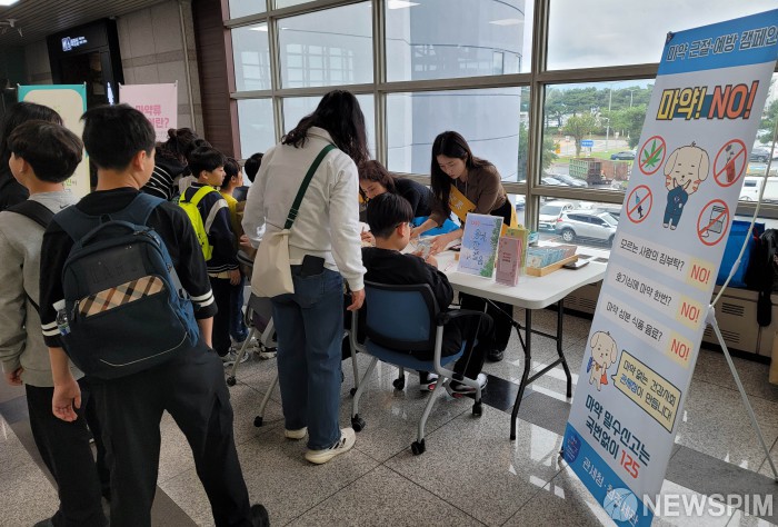 [서울=뉴스핌] 청주세관은 14일부터 15일까지 이틀간 청주국제공항에서 충북도내 초등생 2개교 58명을 초청해 마약의 위험성을 알리고 마약류 단속 현장에서 적발과정을 직접 체험하는 현장학습을 실시했다. 박용주 청주세관장은 우리나라의 미래를 책임질 어린이들이 마약류에 대한 올바른 인식을 통하여 경각심을 가질 수 있도록 마약예방 교육에도 최신을 다할 것이라고 밝혔다.[사진=청주세관] 2025.10.15 photo@newspim.com