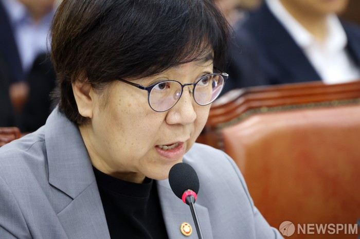 [서울=뉴스핌] 정일구 기자 = 정은경 보건복지부 장관이 15일 서울 여의도 국회 보건복지위원회에서 열린 보건복지부 등에 대한 국정감사에서 의원 질의에 답하고 있다. 2025.10.15 mironj19@newspim.com