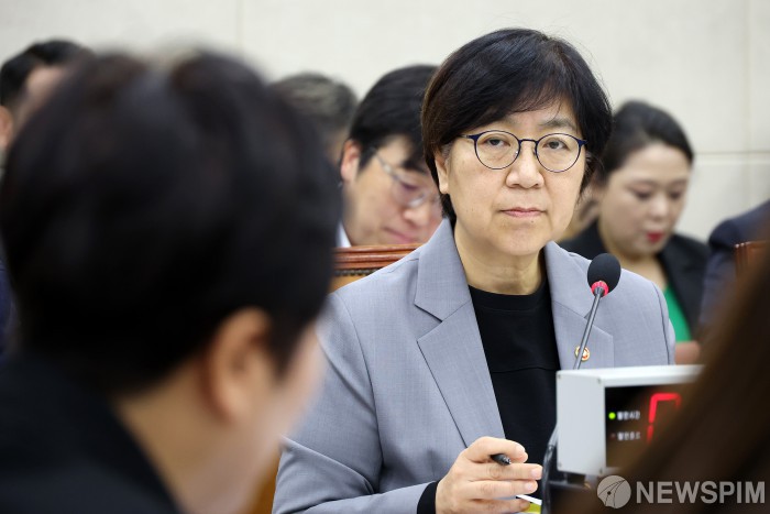 [서울=뉴스핌] 정일구 기자 = 정은경 보건복지부 장관이 15일 서울 여의도 국회 보건복지위원회에서 열린 보건복지부 등에 대한 국정감사에서 의원 질의를 경청하고 있다. 2025.10.15 mironj19@newspim.com