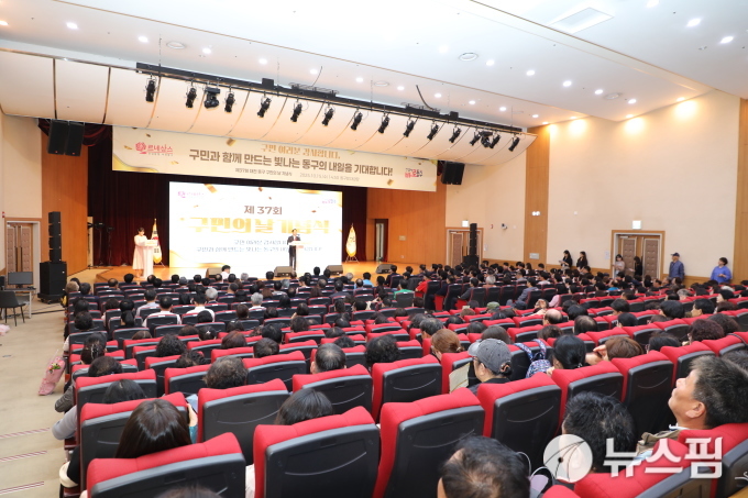 대전 동구가 15일 서른 일곱번째 생일을 맞아 구청 대강당에서 '제37회 구민의날 기념식'을 개최했다. 이날 행사에는 박희조 동구청장과 오관영 오관영 동구의회 의장, 이장우 대전시장, 정명국 대전시의원, 박헌철 대한노인회 동구지회장 등 주요 내빈과 구민 400여 명이 참석했다.