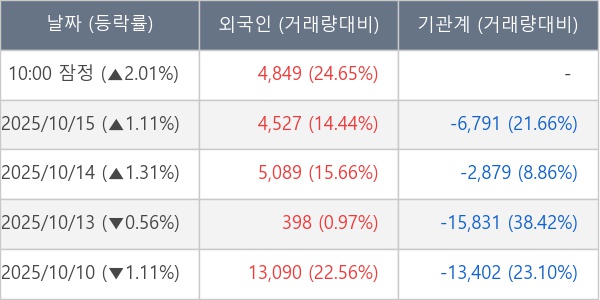 [표] 외국인ㆍ기관 순매매량 (단위 주)